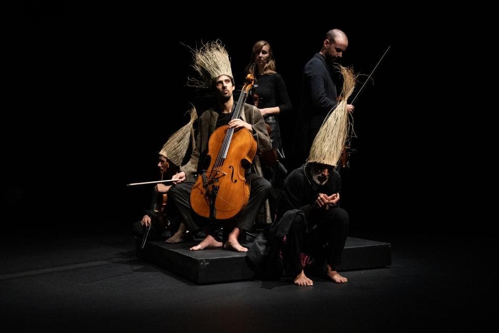 ‘Highlands’ es una propuesta para 16 intérpretes: 8 bailarines, 4 cantantes y 4 músicos de cuerda, que trata sobre la búsqueda de la espiritualidad, pero también de lo mundano, sobre las preguntas sin respuesta, sobra la paradoja entre el tiempo efímero del humano frente al tiempo expandido de la Historia.