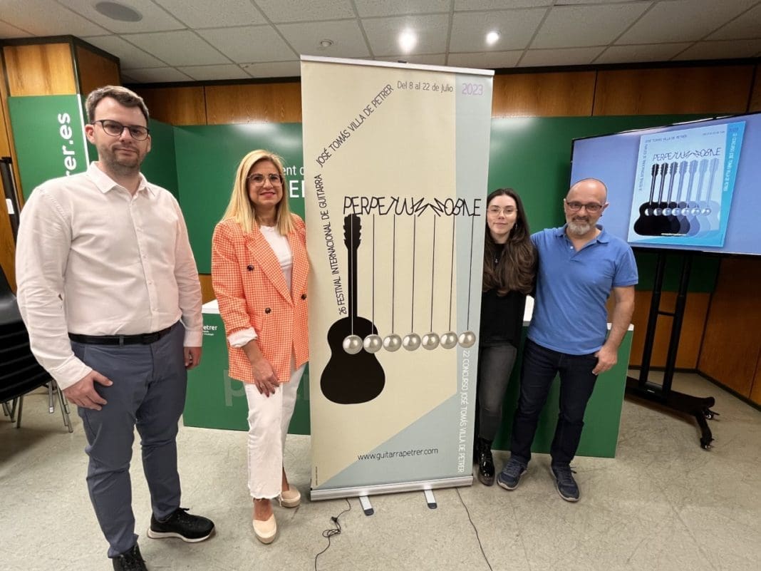 La alcaldesa de Petrer, Irene Navarro, el director del festival, Pepe Payá, el concejal de Cultura, Fernando Portillo, y la directora del Concurso José Tomás, Marina Payá, han presentado esta mañana la 26ª edición del Festival Internacional de Guitarra José Tomás – Villa de Petrer, que tendrá lugar del 8 al 22 de julio.