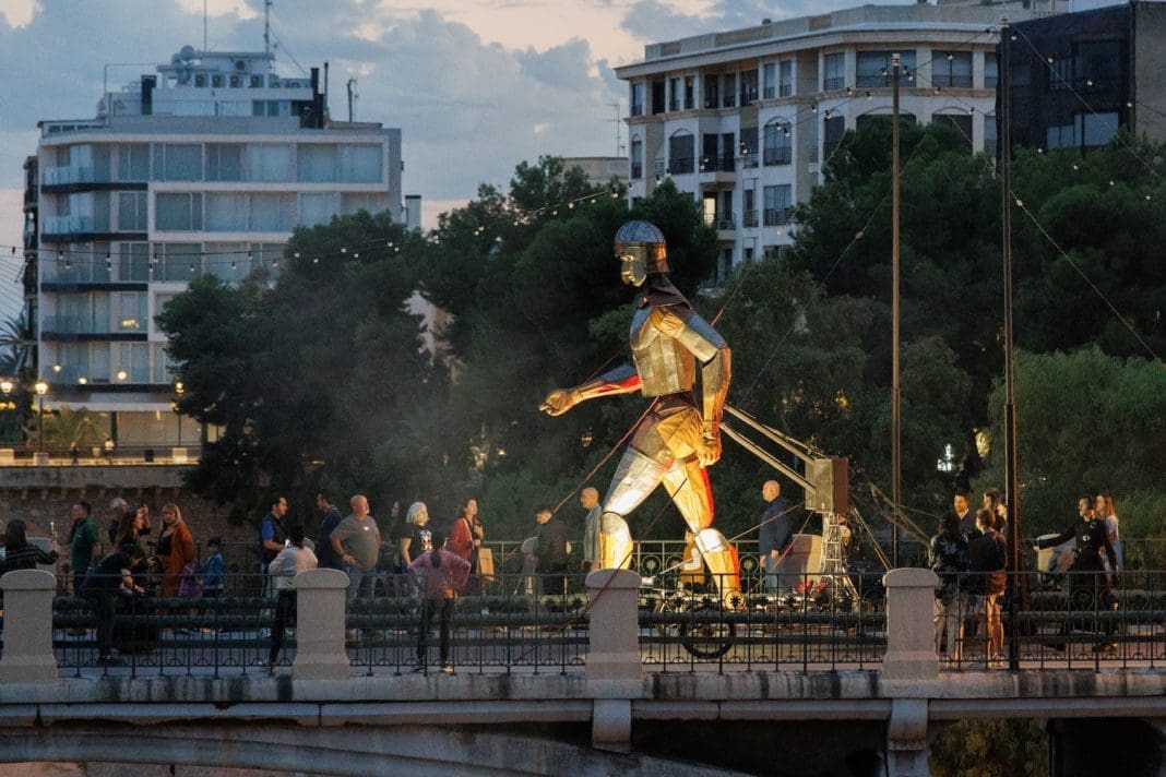 Durante la jornada de ayer el Festival Medieval de Elche, continuó sorprendiendo y entreteniendo a sus visitantes. Desde por la mañana con el mercado medieval y sus múltiples actividades en el Paseo de la Estación. Por la tarde el espectáculo ‘Aquiles’, de la compañía La Fam, no dejó indiferente a nadie. Un espectáculo de gran impacto visual que dejó encantados a todos aquellos que se acercaron a ver cómo este gigante de 5 metros de altura y casi 800 kg recorría las calles de la ciudad.