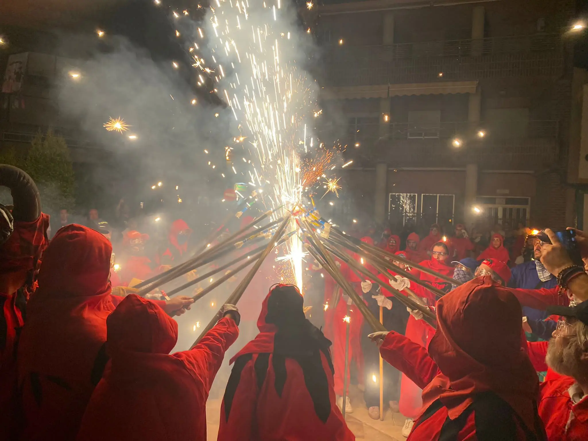 Miles de personas acompañaron este viernes a los integrantes de la Colla Dimonis en el ‘correfocs’ de inicio de los actos festeros propiamente dichos, que volvió a destacar por su luminosidad, el fuego y la pólvora que a todos embriaga y las danzas musicales seguidas por todos.