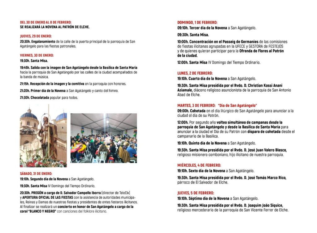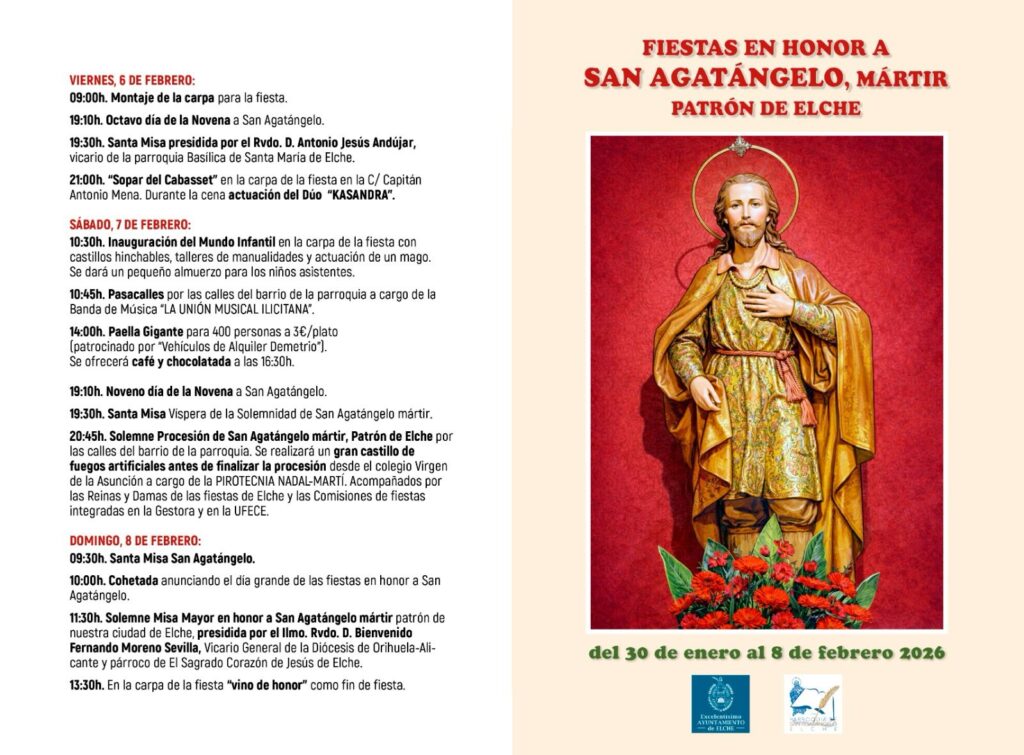Elche celebra desde este viernes las fiestas en honor a San Agatángelo, patrón de la ciudad. Hay un amplio programa de actos religiosos, culturales y festivos que se prolonga hasta el domingo 8 de febrero.