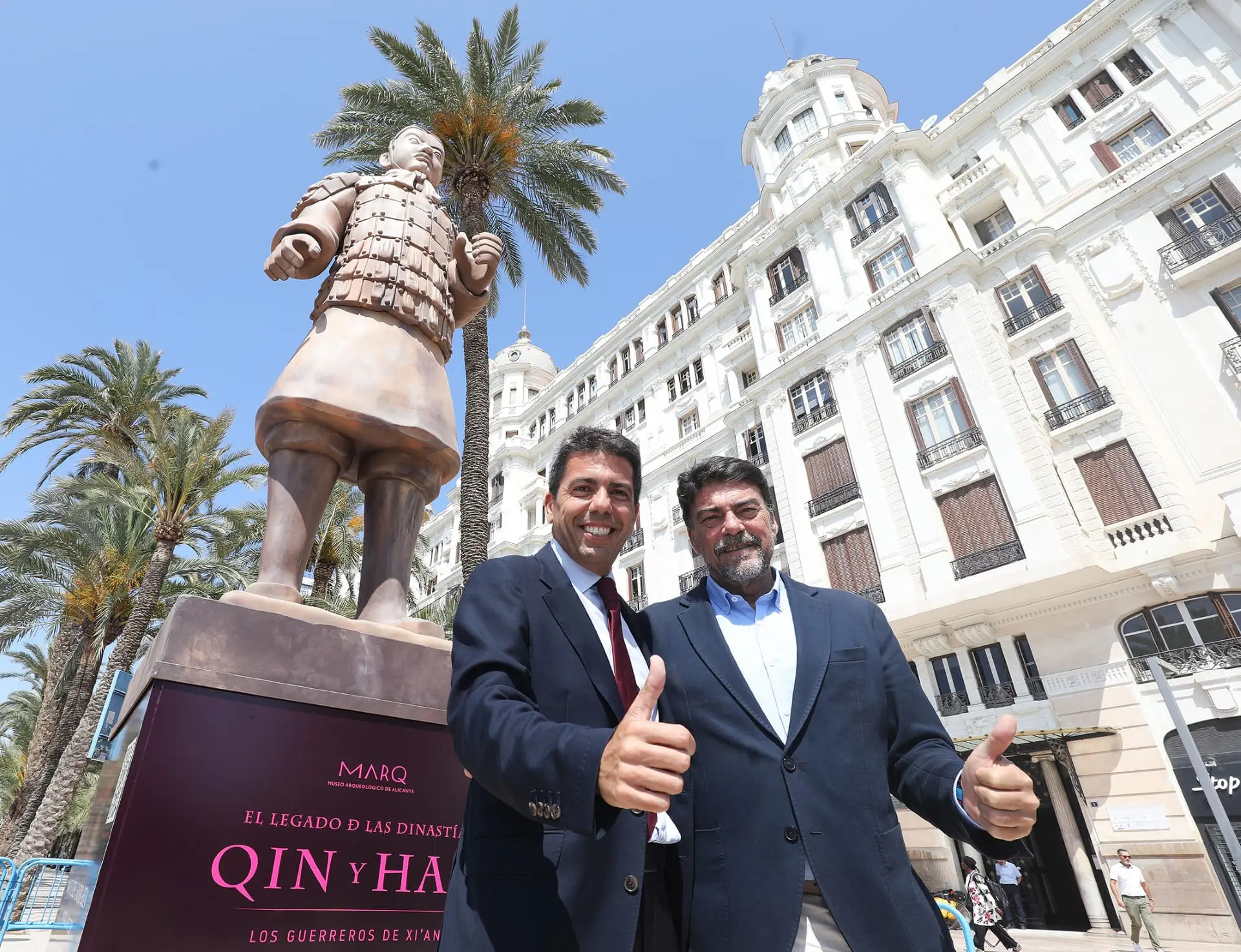 El presidente de la Diputación, Carlos Mazón, ha visitado esta mañana la escultura gigante de un guerrero de Xi’an que, desde hoy y durante los próximos meses, presidirá el emblemático paseo de La Explanada de España de Alicante para promocionar la muestra internacional que se exhibe en el MARQ.