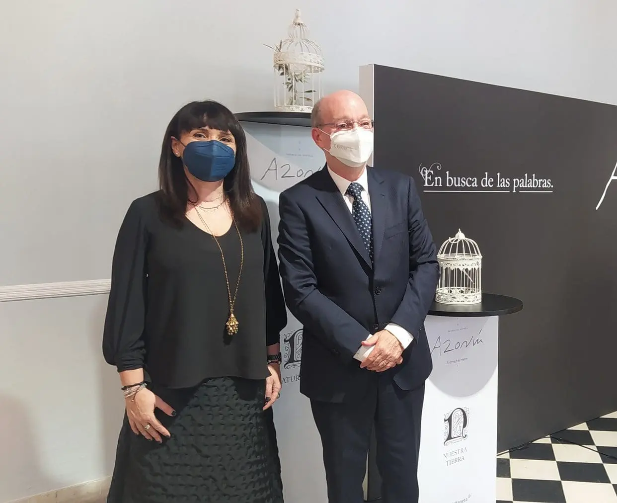 La vicepresidenta primera y diputada de Cultura, Julia Parra, y el director de Relaciones Institucionales del Grupo Planeta, Carlos Creuheras, han anunciado las obras finalistas del ‘Premio Azorín de Novela’ 2021, en la sala de Exposiciones del Palacio Provincial.