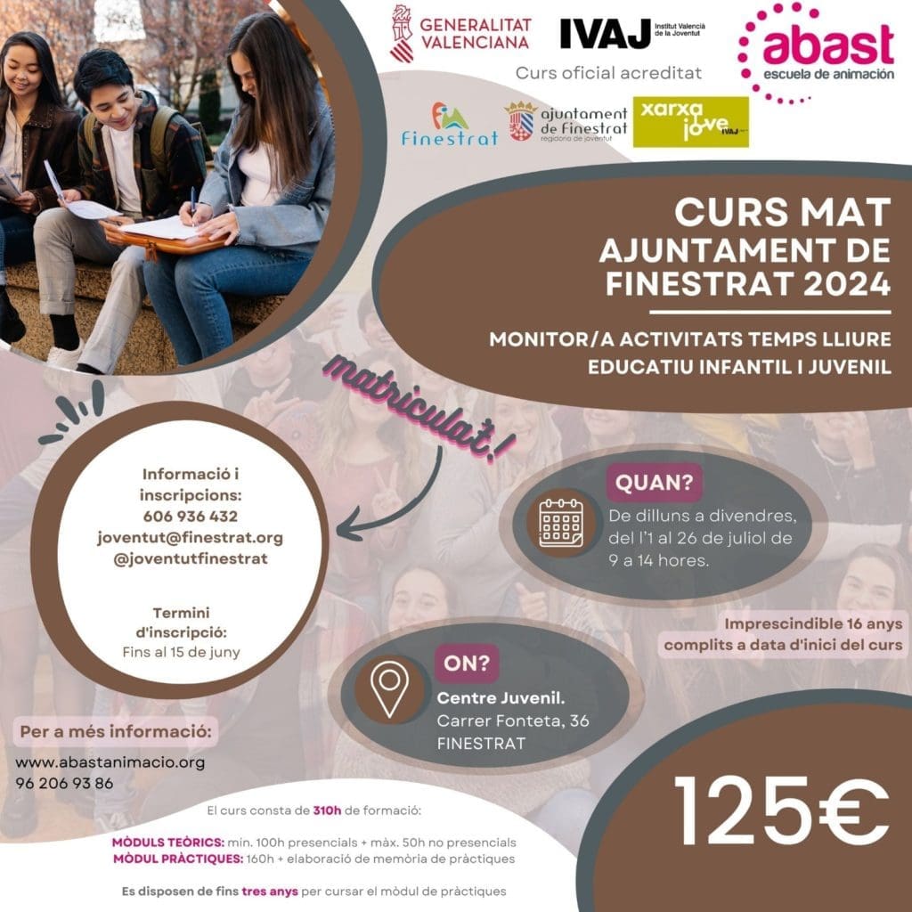 La Concejalía de Juventud del Ayuntamiento de Finestrat lanza una nueva convocatoria del Curso de Monitor/a de actividades de tiempo libre educativo infantil y juvenil que ya tuvo un gran éxito el año pasado.