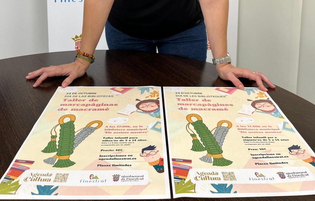 Para este día en concreto, desde el área de Cultura se ha organizado el taller de “Crea tu Marcapáginas en Macramé” impartido por María Cortés Lemus, artesana del macramé en la Sala Infantil de la Biblioteca Municipal “Els Nostres Mestres” a las 17:00h. Un taller divertido y sencillo para realizar originales marcapáginas de macramé para niños de 5 a 14 años (los más pequeños, de entre 5 y 8 años deberán ir acompañados de un adulto). El precio de esta actividad es de 10€ previa inscripción en www.agendafinestrat.es
