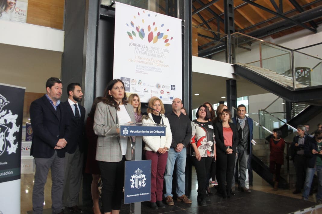La concejal de Educación, Begoña Cuartero, ha inaugurado esta mañana la II Semana Europea de la Formación Profesional en el auditorio de La Lonja, que lleva por título “Orihuela, invirtiendo en talento para la empleabilidad” y que tiene el objetivo de poner en valor la oferta existente de Formación Profesional en los centros del municipio.