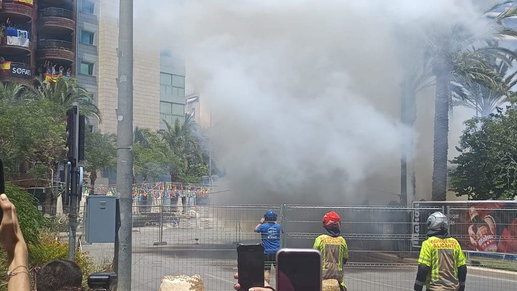 El esperado terremoto, ‘marca de la casa’, ha llegado después del paso del fuego de cuerdas. Lo han conformado diez potentes fases de truenos y sistemas de calibres en incremento. Algunos de los más veteranos de las mascletàs han asegurado no haber asistido a uno de idéntica potencia en las 35 ediciones anteriores del certamen. Ese estruendo ha tenido continuidad con un bombardeo final compuesto por 7.500 truenos aéreos, en unos pocos segundos. La mascletà, de montaje complejo, se ha cerrado con un golpe seco de truenos sincronizados aéreos y terrestres, que ha entusiasmado a los miles de asistentes al quinto disparo del concurso.