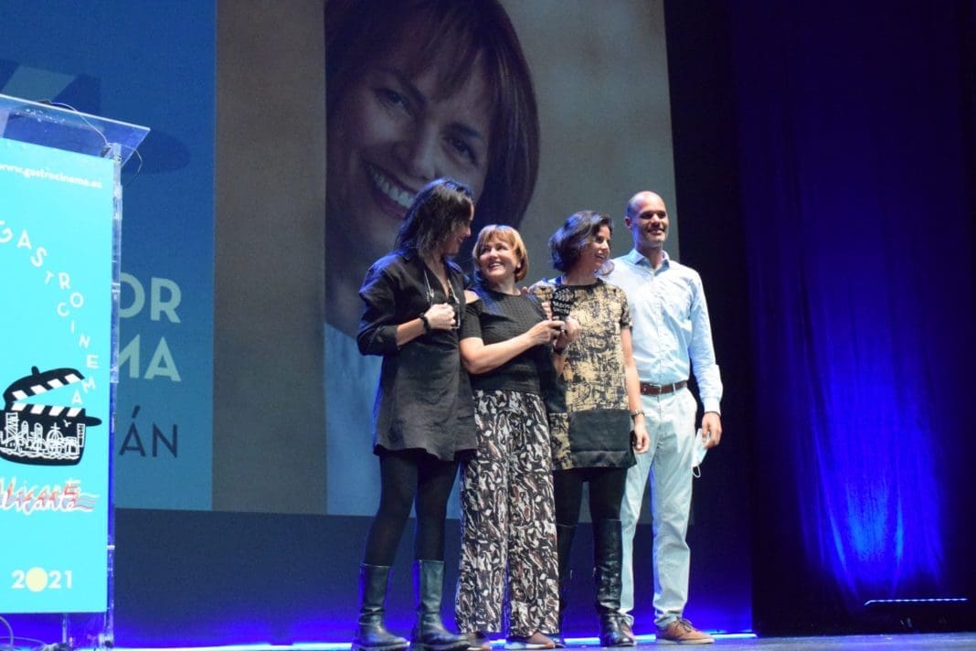 El premio principal, ‘Premio de Honor Gastro Cinema 2021’ ha sido para la chef Mª José San Román; este galardón que nació en el seno del Festival de Cine de Alicante con el propósito de rendir homenaje a personalidades de la gastronomía alicantina, que hacen posible que la dieta mediterránea forme parte del patrimonio inmaterial de la humanidad y que cada día este éxito de nuestra gastronomía sea más reconocido. La chef ha recibido el premio de manos de sus tres hijos.
