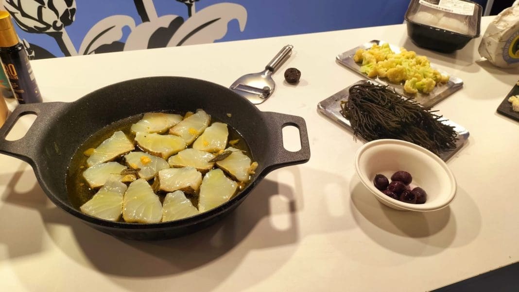 En el stand de la Comunidad Valenciana para finalizar el programa se ha cerrado con el cocinero David Sánchez, de Plaza Canalla, que ha elaborado una degustación exquisita de ‘Steak tartar sobre coca de aceite casera’. Así como el chef Andrea Drago de Orobianco, que cuenta con una Estrella Michelín 2024 por su puesta en valor de la alta gastronomía mediterránea, que ha explicado la receta elaborado en Madrid Fusión con un plato de ‘Fusillone de galera y pomelo, vieira ahumada y caviar’.