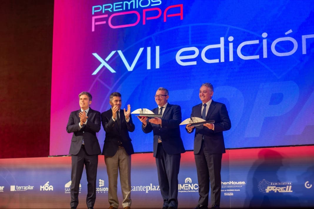 La XVII gala de los Premios de la Federación de Obras Públicas de Alicante ha reconocido la Plaza de arriba de Elda (Premio del Público), la Reforma EDAR de la Isla de Tabarca y conducción submarina (Premio Mención Especial del Jurado), la Mejora y pavimentación de los muelles 1 y 2 del Puerto de Alicante (Premio a la Obra con Mejor Integración en su Entorno, Sostenibilidad y Mayor Respeto al Medioambiente) y la Obras de reurbanización y remodelación de infraestructuras de la Avenida del Mediterráneo y su entorno de Benidorm (Premios FOPA a la Mejor Obra en la provincia de Alicante),