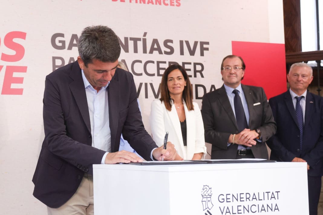 La firma del programa se ha escenificado en un acto en el Palau de la Generalitat con el ‘president’, Carlos Mazón; la vicepresidenta y consellera de Vivienda, Susana Camarero; la titular de Hacienda, Ruth Merino, y representantes de las 14 entidades adheridas.