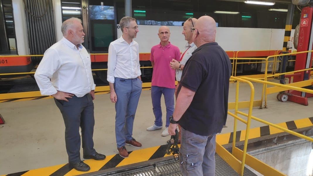 Entre estas mejoras se encuentra la incorporación de los nuevos trenes duales que el conseller ha visitado en los talleres de El Campello del TRAM dAlacant para conocer sus prestaciones.
