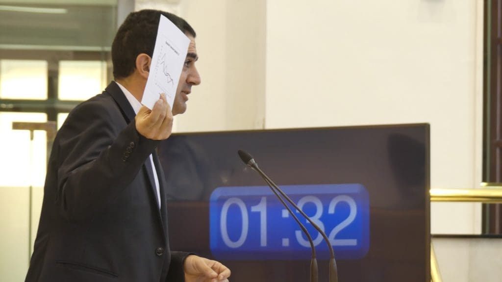 El portavoz de Compromís ha ido destacando el contundente cambio de rumbo de la provincia a través de datos, en 1 año el gobierno actual ha invertido el mismo dinero en construir colegios que el PP en una legislatura. O como se ha rescatado la sanidad de la privatización en lugares como Torrevieja, así como los datos de empleo, donde actualmente el número de parados es el menor desde hace décadas.