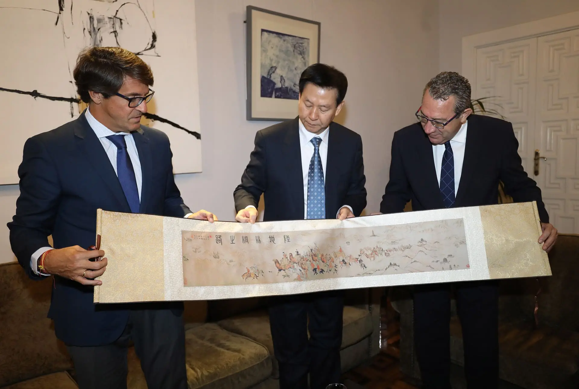 Durante el encuentro, que ha contado con la presencia del diputado de Cultura, Juan de Dios Navarro, y otros representantes del Gobierno Provincial de Shannxi, se han intercambiado sendas piezas de arte. Toni Pérez ha entregado la réplica de un pebetero en forma de busto de una divinidad ibérica hallada en Benidorm y la delegación del país asiático, por su parte, ha regalado a la institución alicantina un tapiz que representa la ruta de la seda que partía de Xi’an y un libro firmado por el presidente de la República Popular China, Xi Jinping.