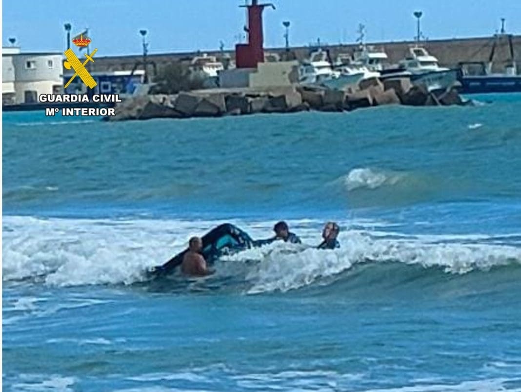 Las condiciones climatológicas eran de temporal de rachas de viento y el agua presentaba un fuerte oleaje, que arrastraban al surfista, así que uno de los guardias civiles se introdujo en el mar sin pensarlo, alcanzó al hombre, que se encontraba a unos 100 metros, y lo sacó hasta la orilla con la ayuda de sus compañeros.