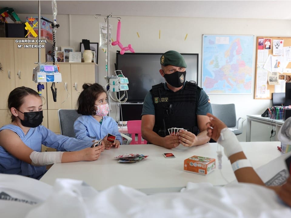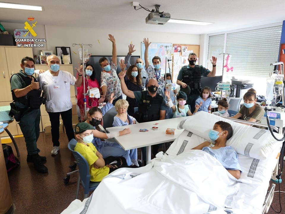 La Guardia Civil de Alicante ha acudido a la Unidad de Hospitalización de Cirugía y Oncología Pediátricas del Hospital General Universitario Dr. Balmis de Alicante para realizar una visita a los menores allí ingresados. El gesto ha sido promovido por la asociación Llaves de Libertad, con el objetivo de hacer “más amena” la hospitalización de los pequeños.
