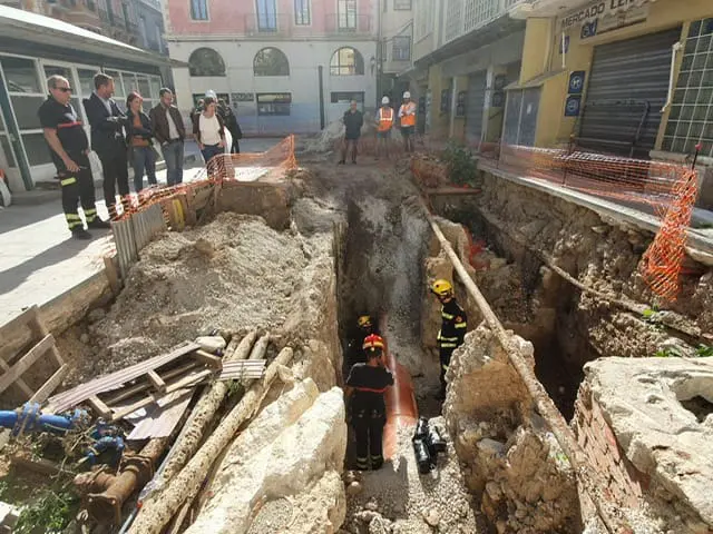 El descubrimiento del acceso al refugio de la Guerra Civil del Mercado Central se ha producido esta mañana después de unos trabajos realizados ayer por Aigües d’Elx para desatascar una tubería de la zona. Esto ha permitido la entrada al refugio por parte de los Bomberos, de técnicos municipales y de la arqueóloga de Aigües d’Elx que han confirmado que el refugio se encuentra tal cual estaba reflejado en los planos de los que se dispone.