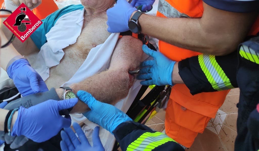 El aviso al Consorcio Provincial de Bomberos de Alicante se ha recibido a las 12:53 horas, inmediatamente se personaron en el lugar a los hechos y vieron que el hombre sangraba mucho.