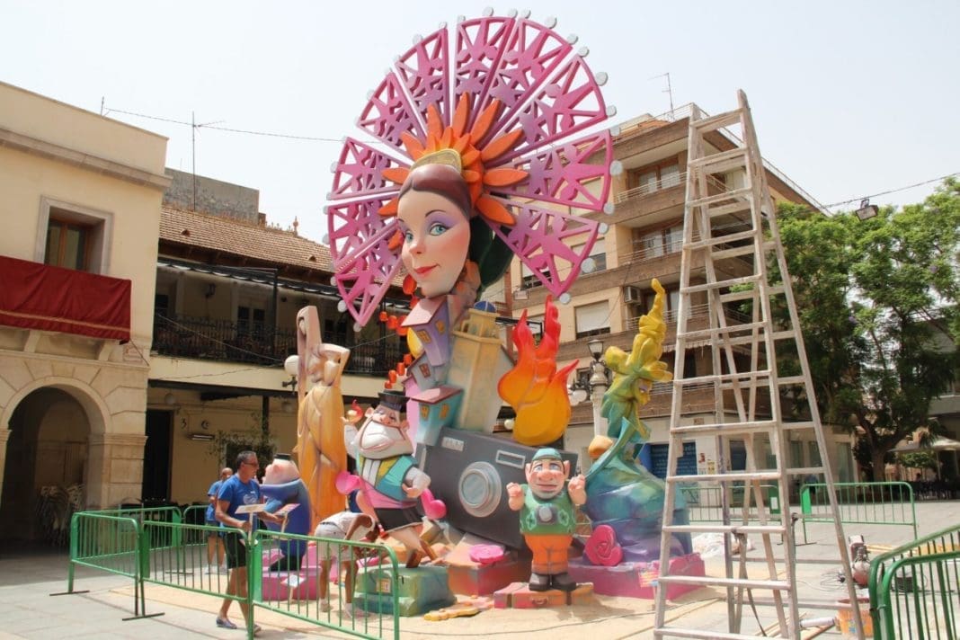El boceto presentado por Granja Camarasa, cuyo taller se encuentra en San Vicente del Raspeig, cuenta con una altura que rondará los diez metros de alto y una base de siete por siete metros. La edificación fogueril albergará más de 12 ninots, varios de los cuales harán referencia a la actualidad e historia del municipio. Los materiales en los que se fabricará la obra serán en su mayoría madera de chopo, tableros de madera, cartón, papel y porexpán.