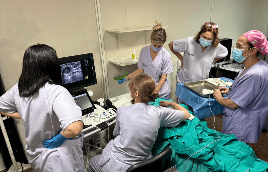 Como ha detallado la doctora Mª Isabel Moya, adjunta del Servicio de Radiodiagnóstico, “se trata de una técnica guiada por ecografía que consiste en la inserción de una aguja muy fina a través de una pequeña incisión en la piel, que cuenta con un sistema que alcanza temperaturas de frío extremo, por debajo de -40ºC, consiguiendo la congelación del tumor, así como la destrucción de las células tumorales”.