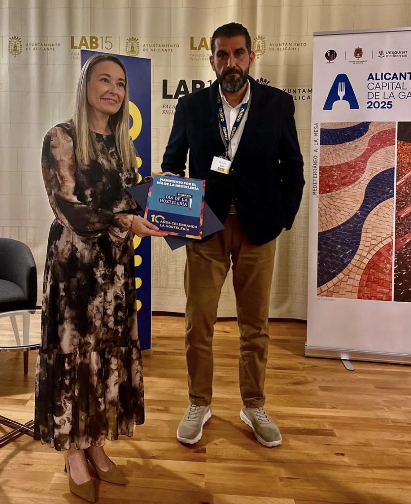 El acto ha contado con la presencia del director de Makro Alicante, Sergio Boj, la presidenta de la Asociación de Restaurantes de Alicante (ARA), Gabriela Córdoba, y la presidenta de la asociación Provincial de Empresas de Hostelería de Alicante (APEHA), María del Mar Varela, que han recibido un reconocimiento y realizado la lectura de un manifiesto en el que se reivindica la importancia del sector en nuestra cultura y economía.