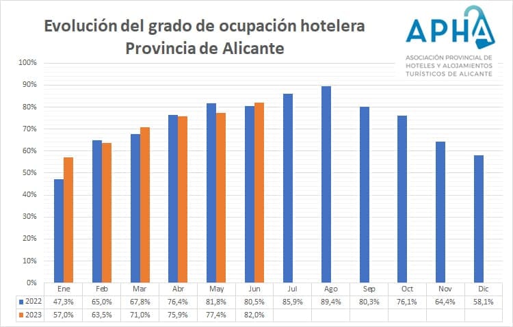 Los hoteles de Alicante superaron en junio la ocupación de 2022