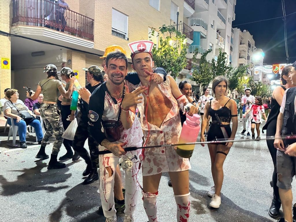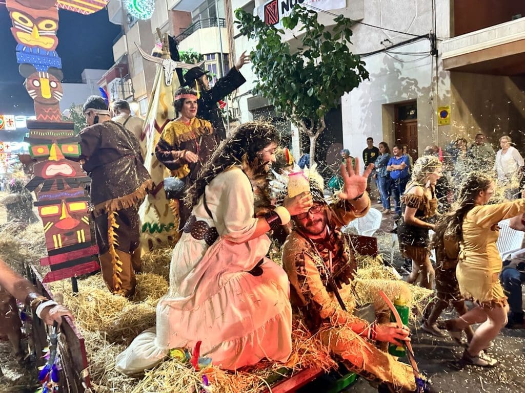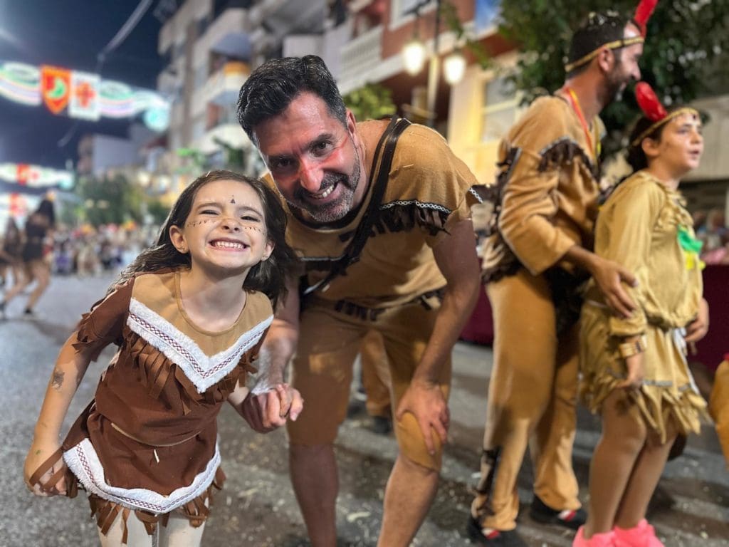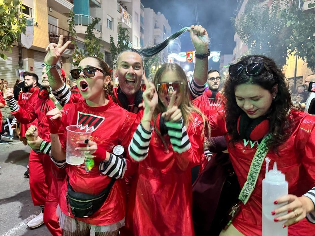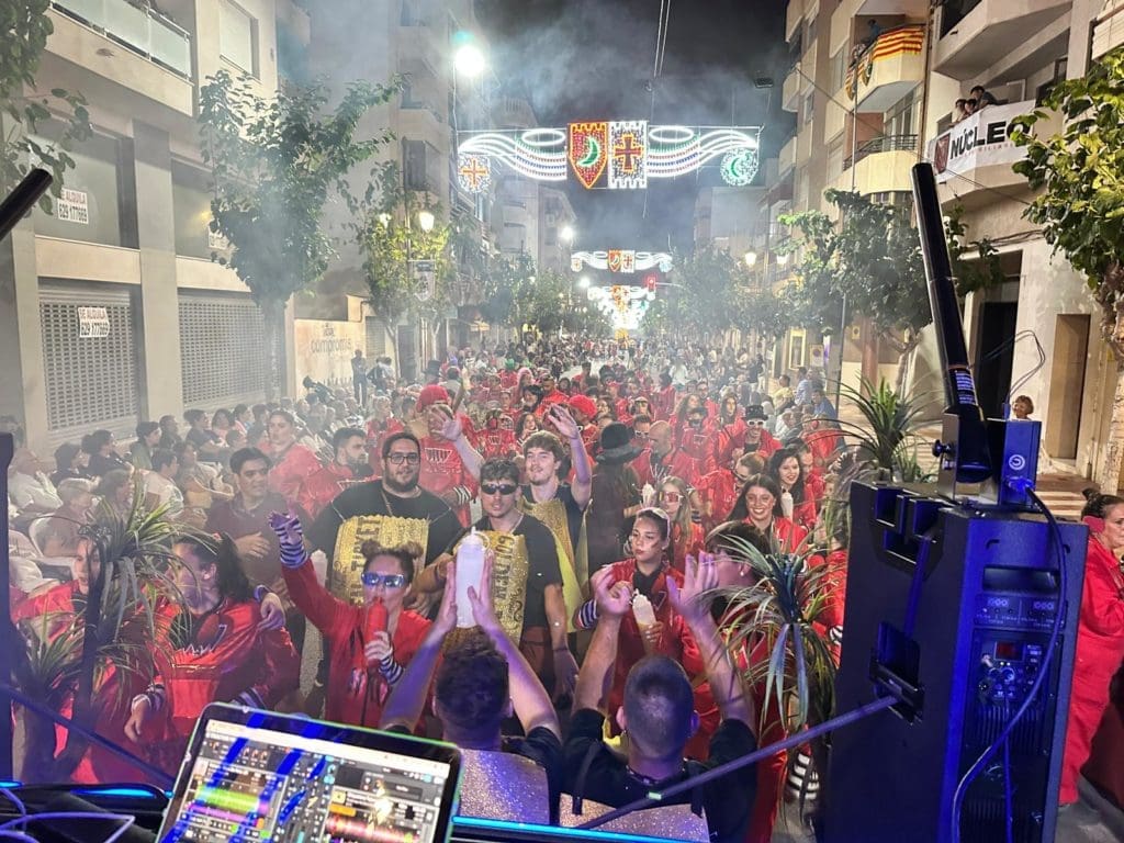Con música enlatada desfilaron desde “Charlie y la máquina de chocolate” (Marrocs), que daba inicio a la retrata, fueron sucediéndose temáticas, como “Dioses griegos” (Ain Karim), “Bomberos (Pollosos), “Un paseíto en Vespa” (Cavallers de Conquesta), “Fregona” (Cavallers del Temple), “Sombies” (Tercio de Flandes), “Boxeo” (Cristians del Campello), “Tribu comanche” (Jaume I), “Olimpiadas” (Zairíes), “Srek” (Maseros), y “Locomía”, idea de Veterans.