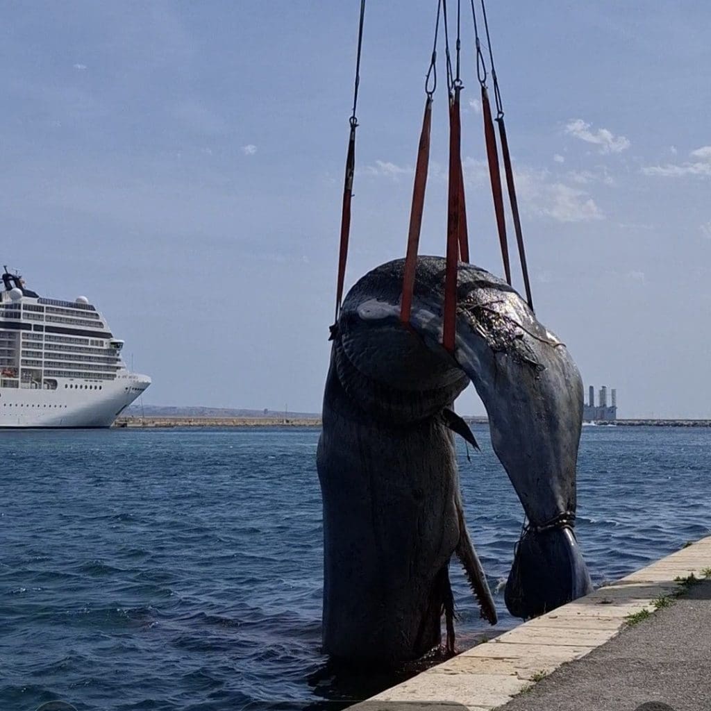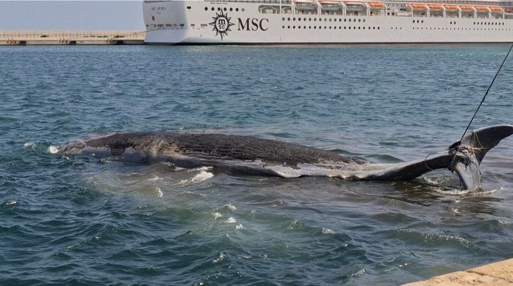 El cachalote de 12 metros de longitud avistado este fin de semana en aguas de Tabarca ya ha sido remolcado hasta el Puerto de Alicante. En concreto se ha llevado el cuerpo del animal hasta el muelle 9. El motivo es poder analizar cuáles fueron las causas de su fallecimiento.