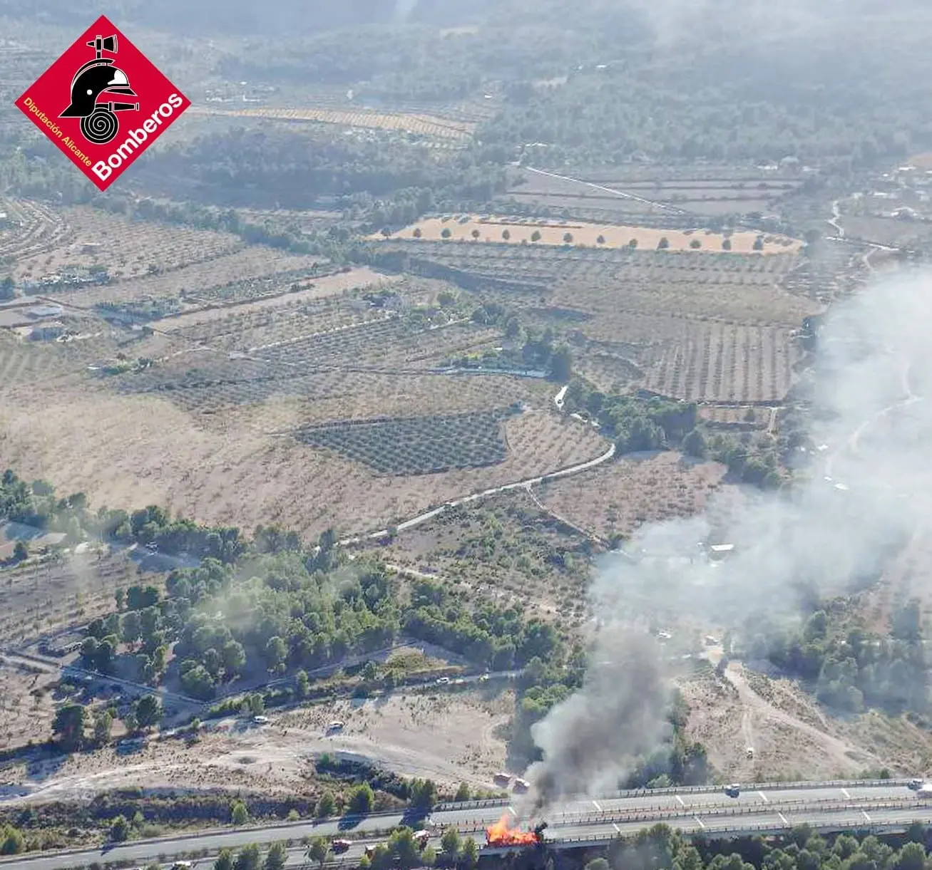 Un camión de grandes dimensiones que transportaba pallets se ha incendiado en Castalla, concretamente en la A-7 km 473 sentido València, así lo han informado los Bomberos de la Diputación de Alicante.