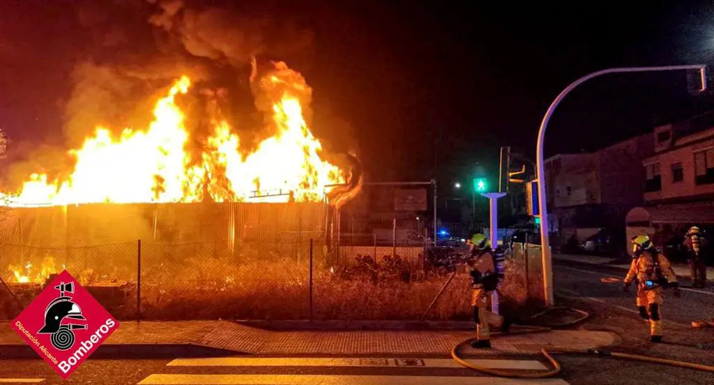 Esta madrugada se ha registrado un incendio de una nave industrial que ha afectado a varios vehículos en la avenida Finestrat con calle El Xarquet de Villajoyosa.