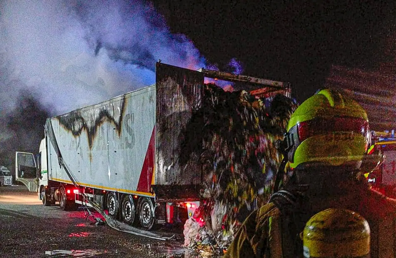 Esta madrugada los bomberos han tenido que intervenir para extinguir el incendio de un tráiler en la CV-861 de Dolores.