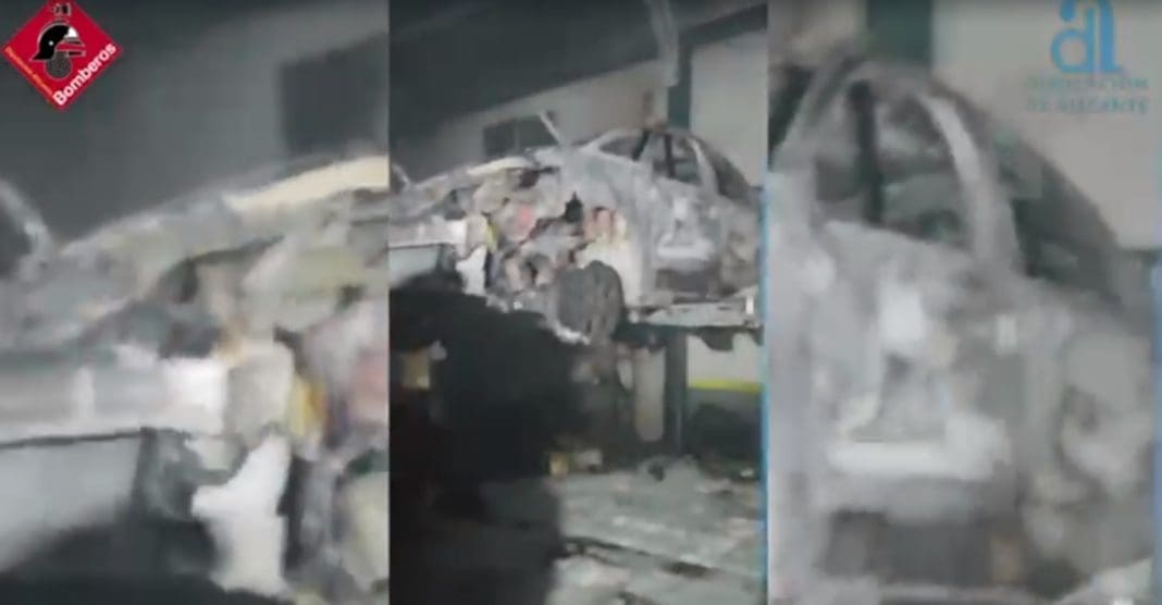 El incendio se ha originado en un coche situado dentro del taller, en una plataforma elevadora.