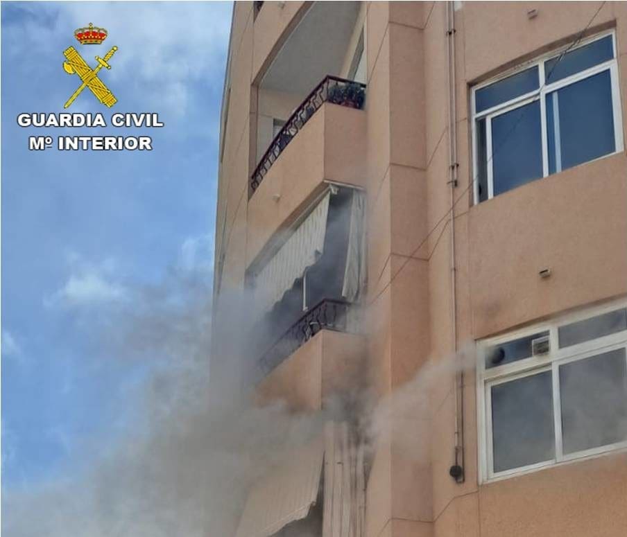 Sobe el mediodía de ayer día 2 de septiembre, una patrulla del Puesto Principal de la Guardia Civil de Villajoyosa estaba realizando un servicio en los Juzgados, cuando un ciudadano les alertó que había un edificio cercano que se estaba incendiando. De inmediato, salieron a la calle y desde allí comprobaron que de la primera planta de un edificio estaba saliendo gran cantidad de humo por las ventanas y terraza.