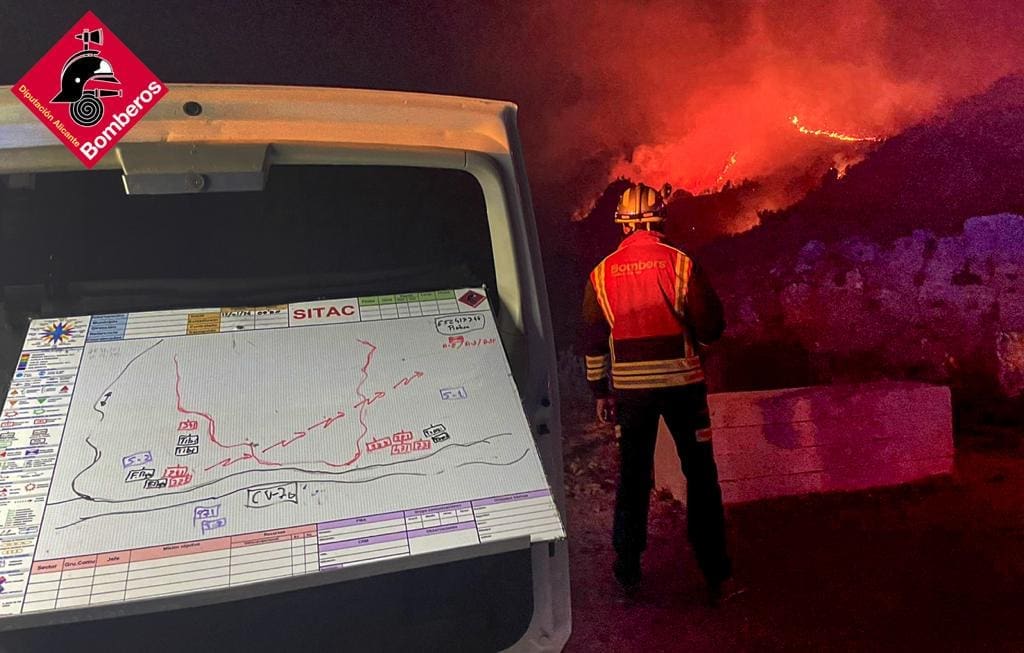Según fuentes del Consorcio Provincial, a las 23:57 horas comenzó un fuego en la CV-70 entre el kilómetro 2 o 3 aproximadamente, a la altura de Confrides. El incendio Forestal se localizó en una vaguada y se expande por una zona de pinadas que obligó a cortar la carretera autonómica CV-70.