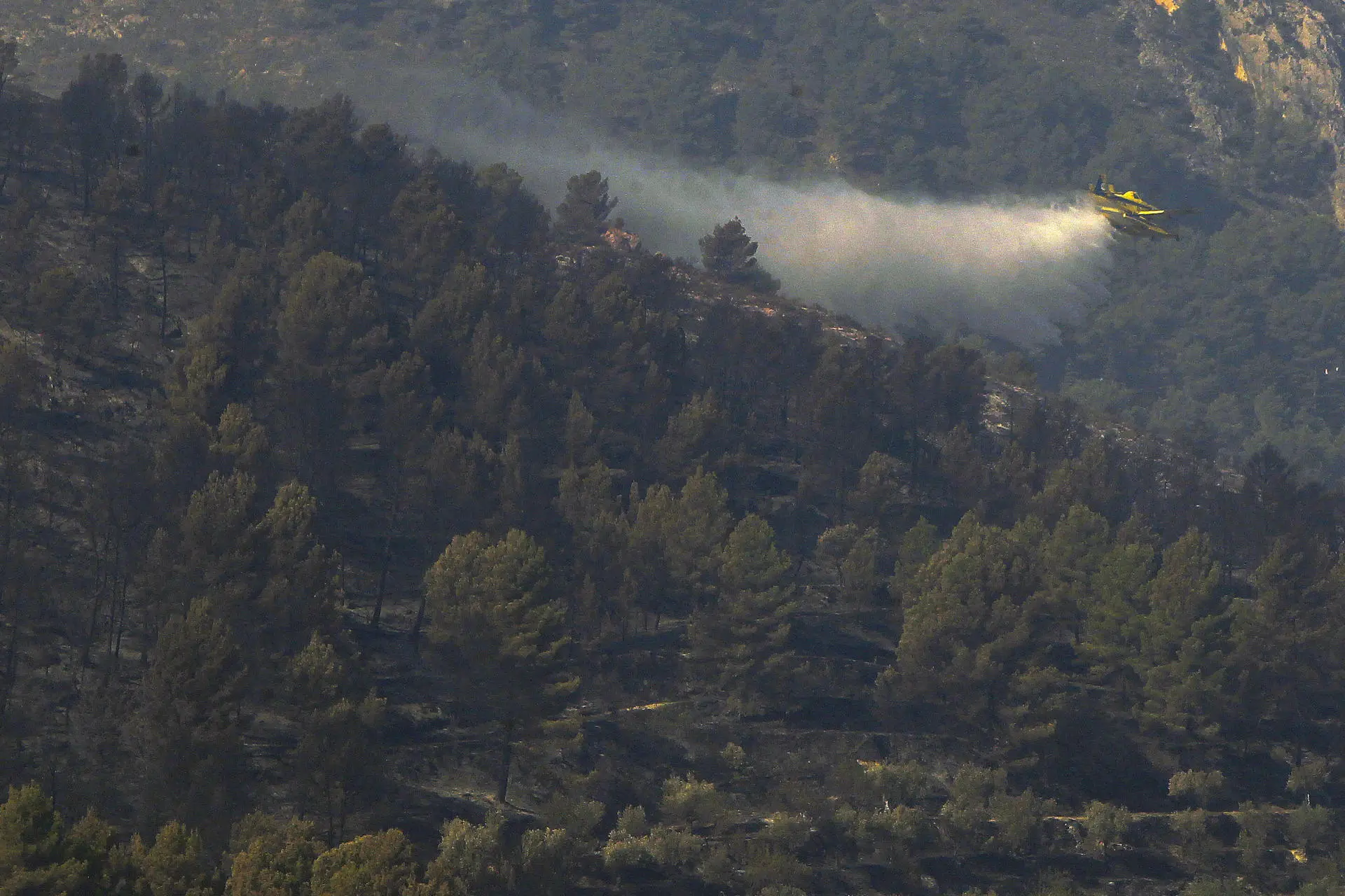 Por tierra, operan tres bombas rurales pesadas, una nodriza ligera y una decena de bomberos de los parques de Cocentaina, Ibi, Benidorm y San Vicente del Raspeig, junto a varias unidades de los agentes forestales.