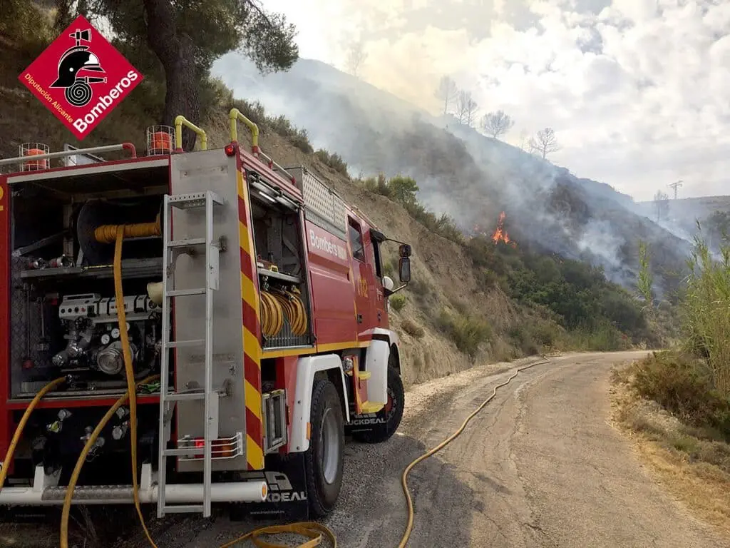 El incendio está activo en estos momentos, y se han movilizado medios aéreos (helicóptero y aviones) junto a los terrestres (una unidad mando jefatura, una bomba urbana pesada, una bomba nodriza pesada de los parques de San Vicente y Elda, mas tres unidades de bomberos forestales.)
