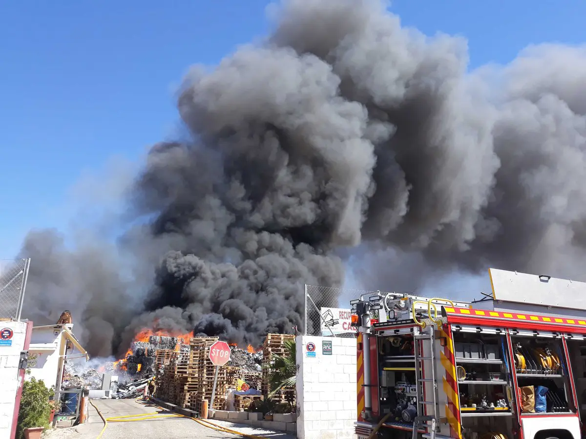 Los Bomberos de la provincia se movilizan para apagar un incendio en el Polígono de Carrús de Elche