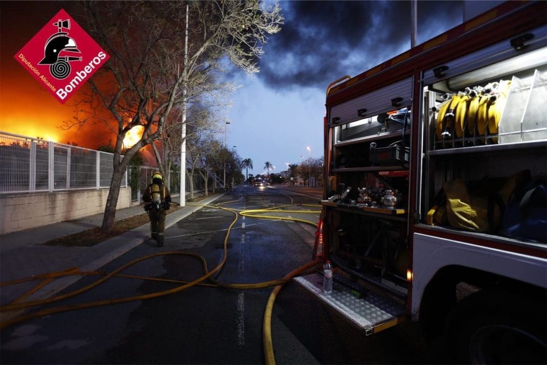 Según información del Consorcio Provincial de Bomberos, a las 20:10 horas se inició un fuego en una fábrica de calzado del Polígono industrial de Torrellano con una enorme columna de humo negro de unos 30 metros de diámetro aproximadamente.