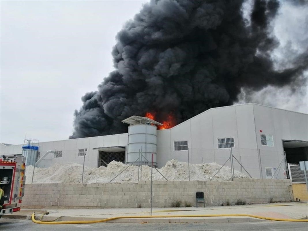 Efectivos de Bomberos han extinguido el incendio declarado este domingo en una nave industrial de 1.000 metros cuadrados de una empresa dedicada al reciclaje de caucho, en el término municipal de Crevillent.