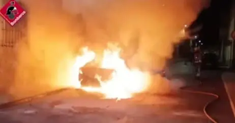 Un vehículo es consumido por las llamas en medio de la vía pública en Aspe