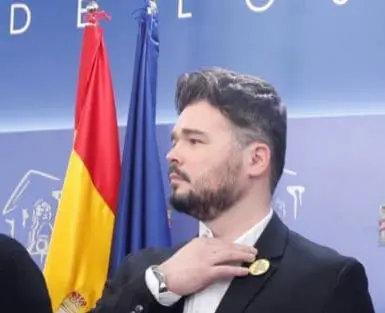 «La Monarquía Española y su máximo exponente, el Rey de España, no nos representa», comienza el manifiesto que ha comenzado leyendo, en castellano, el portavoz parlamentario de ERC en el Congreso, Gabriel Rufián, y que han continuado sus homólogos de Junts, Laura Borrás; Bildu, Oskar Matute; CUP, Mireia Vehí; y BNG, Néstor Rego.