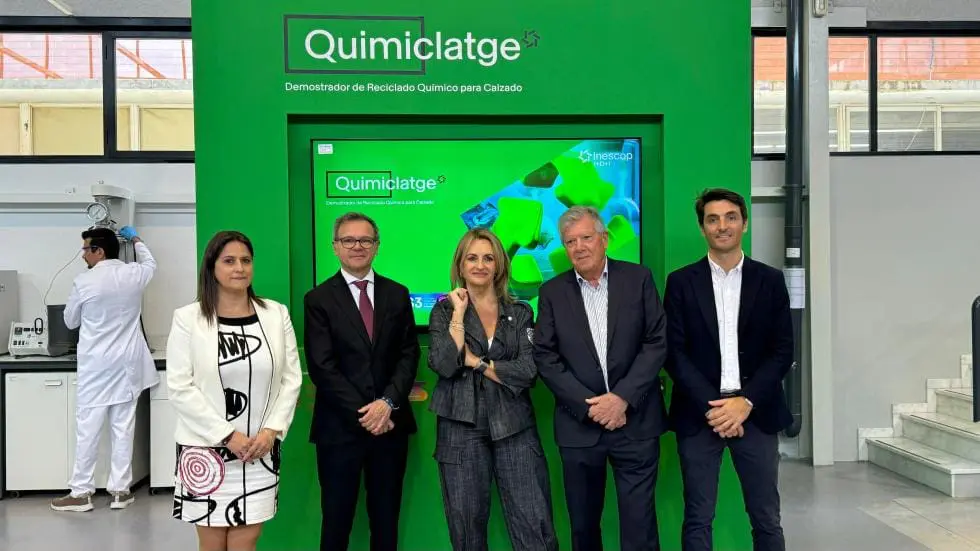 La consellera de Innovación, Industria, Comercio y Turismo, Nuria Montes, ha visitado en Elda el Centro Tecnológico del Calzado (INESCOP), donde ha sido recibida por su presidente, Antonio Porta, junto con el resto del equipo directivo de la entidad. Durante la visita, la consellera ha participado en la inauguración del Demostrador de reciclado químico “Quimiclatge”.