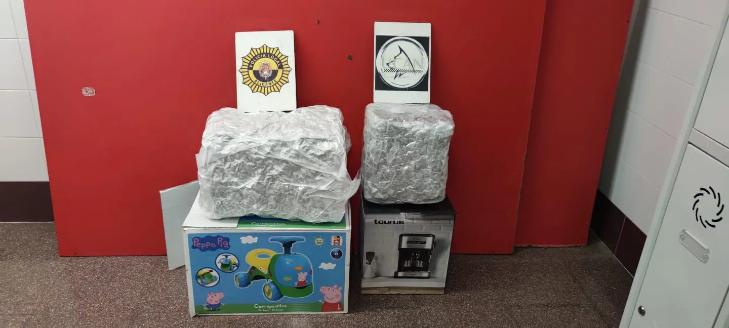 Acompañados por el perro Kata, de la unidad canina de la Policía Local, comprobaron que en un autobús de una empresa especializada en transportes a Rumanía estacionado en el andén 11 se estaba cargando diferente paquetería. En ese momento, el can se introdujo en el remolque y señaló dos cajas de cartón que aparentemente contenían un juego infantil y una cafetera doméstica.