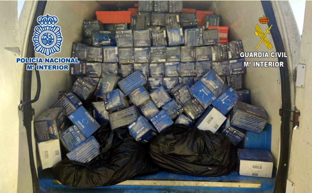 Tanto la Guardia Civil como la Policía Nacional continúan las investigaciones para detener al tercer miembro de la banda y para localizar a los legítimos propietarios de los 21.600 preservativos y los 193 pares de sandalias intervenidos.