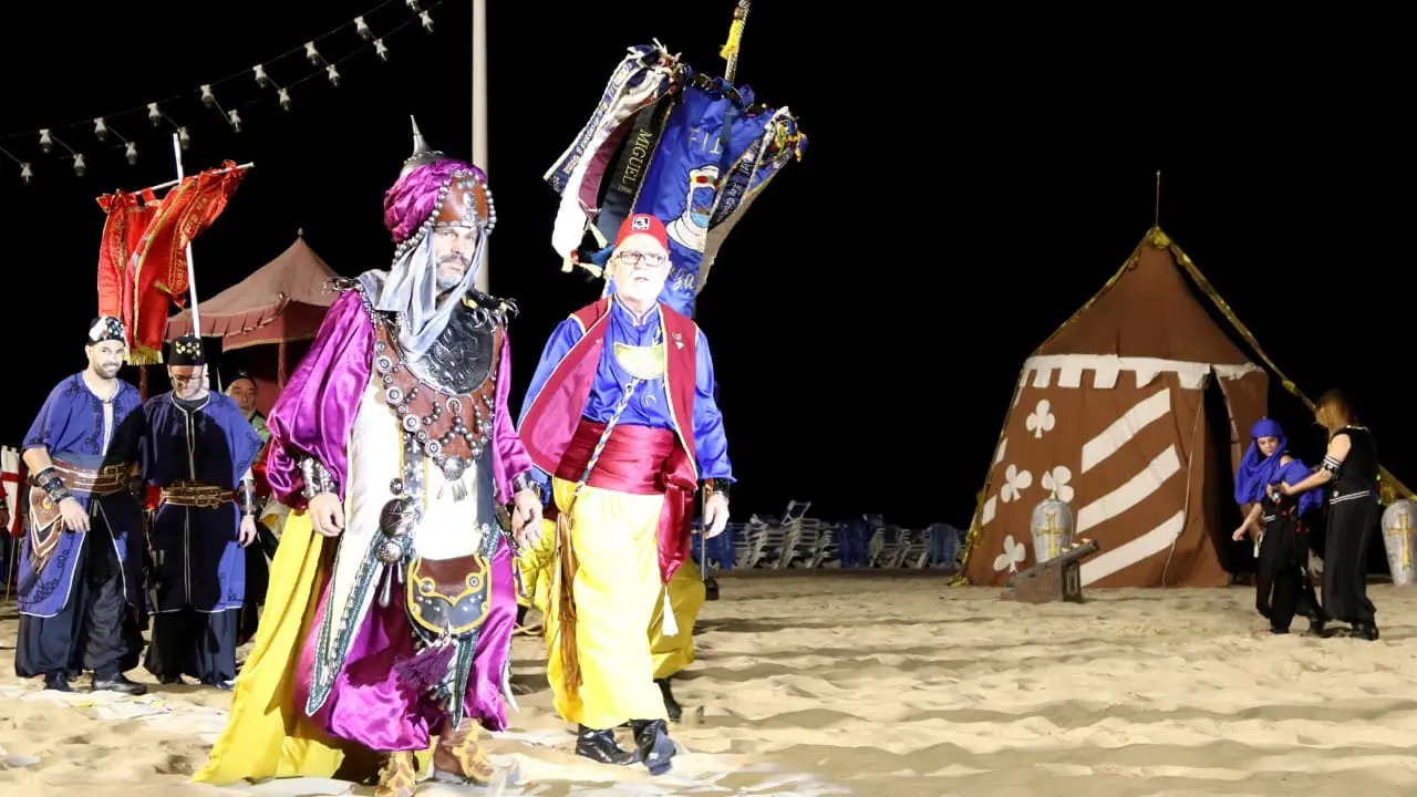 El acto de la ‘Invasión Mora de la Villa’ dio anoche inicio a las fiestas de Moros y Cristianos de Benidorm. Centenares de personas se congregaron en la playa de Levante para vivir este acto que simboliza la llegada de los ejércitos de la media luna a Benidorm encabezados por el embajador moro.