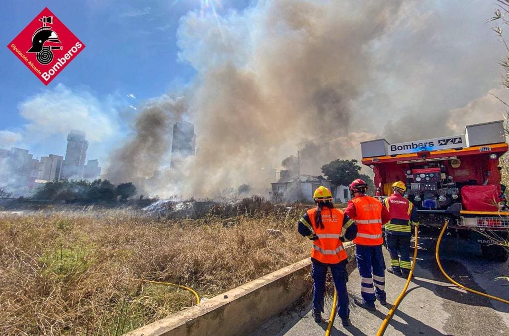 Policía Científica y Bomberos investigan las causas del incendio en la partida Armanello de Benidorm