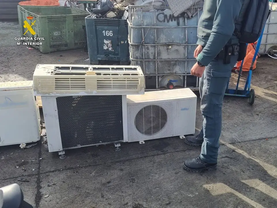 En una primera fase, se identificó al principal sospechoso, un hombre de 44 años y nacionalidad rumana, con antecedentes por delitos similares. Este sujeto se encargaba de recibir aparatos de aire acondicionado retirados por instaladores, quienes, en lugar de entregarlos a gestores autorizados, se los proporcionaban a cambio de 20 euros por unidad. Posteriormente, el investigado fragmentaba los aparatos sin medidas de seguridad en el patio de su vivienda, utilizando herramientas como radiales, para vender sus partes metálicas como chatarra en centros de reciclaje.