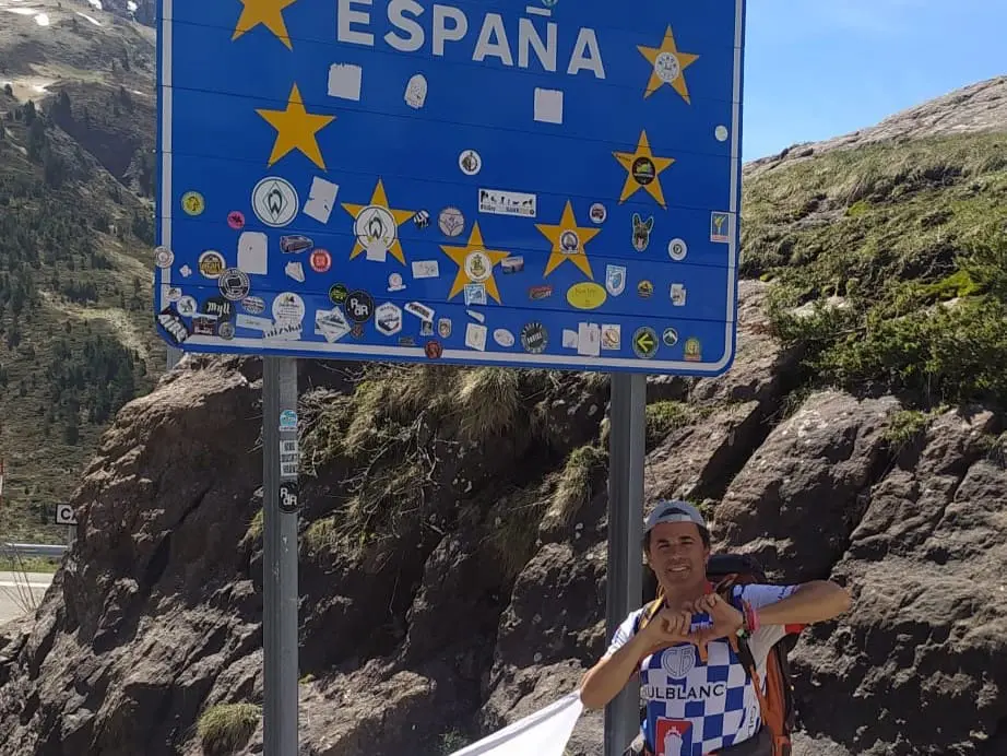 El campellero José Arredondo llegó este viernes a territorio español tras más de 60 días de caminata desde que partió de Roma para llegar a pie a Santiago de Compostela, con el objetivo de reivindicar la investigación y la lucha contra el cáncer de mama, que han padecido algunas integrantes de su familia.