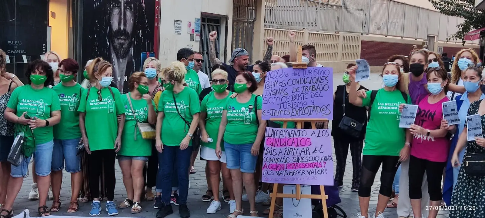 El colectivo de camareras de piso, conocidas como ‘Las Kellys’, se concentraron ayer en Benidorm en el Día Mundial del Turismo «para decir que nosotras también somos turismo, también lo hacemos posible», así lo explica Yolanda García, portavoz de Las Kellys de Benidorm en sus escasos 10 minutos de descanso.