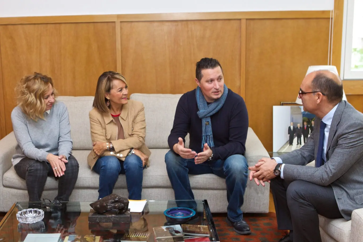 El chef contestano se ha reunido esta mañana con el rector, Manuel Palomar, para abordar distintos aspectos de la colaboración conjunta. A la reunión también ha asistido Ana Laguna, directora de relaciones con la sociedad y responsable del proyecto de gastronomía en la UA, a quien ha acompañado la Ana Zaragoza, del departamento de Enfermería y la periodista Ángeles Ruiz, colaboradora del Máster.
